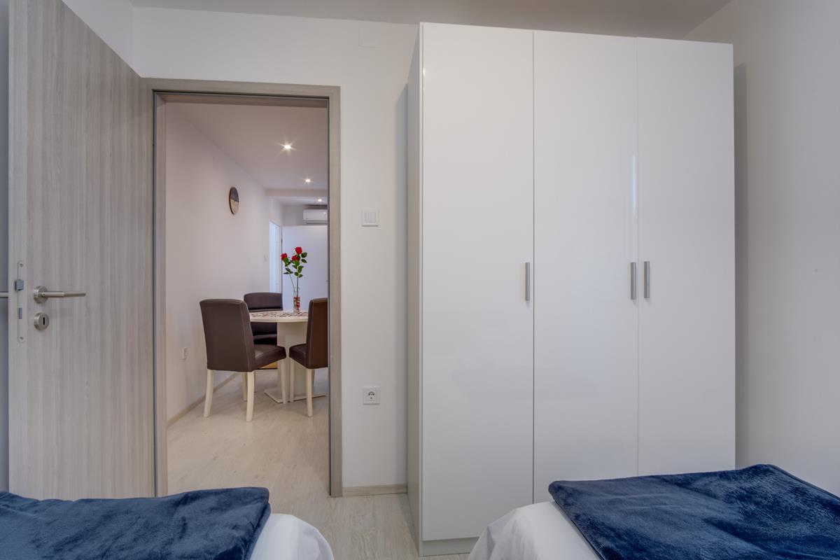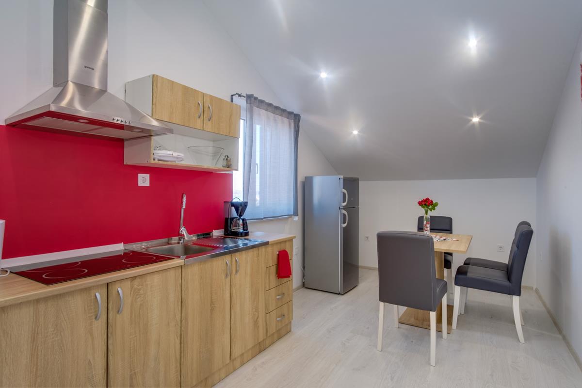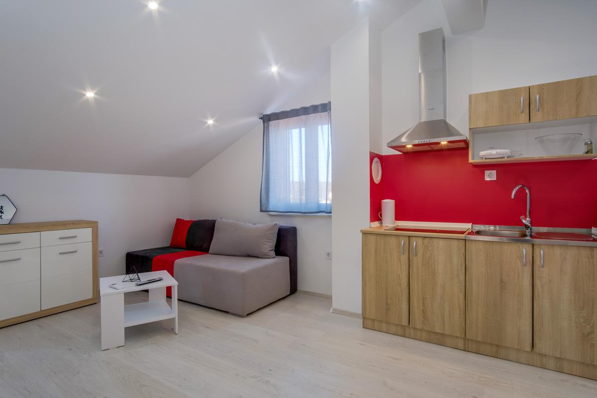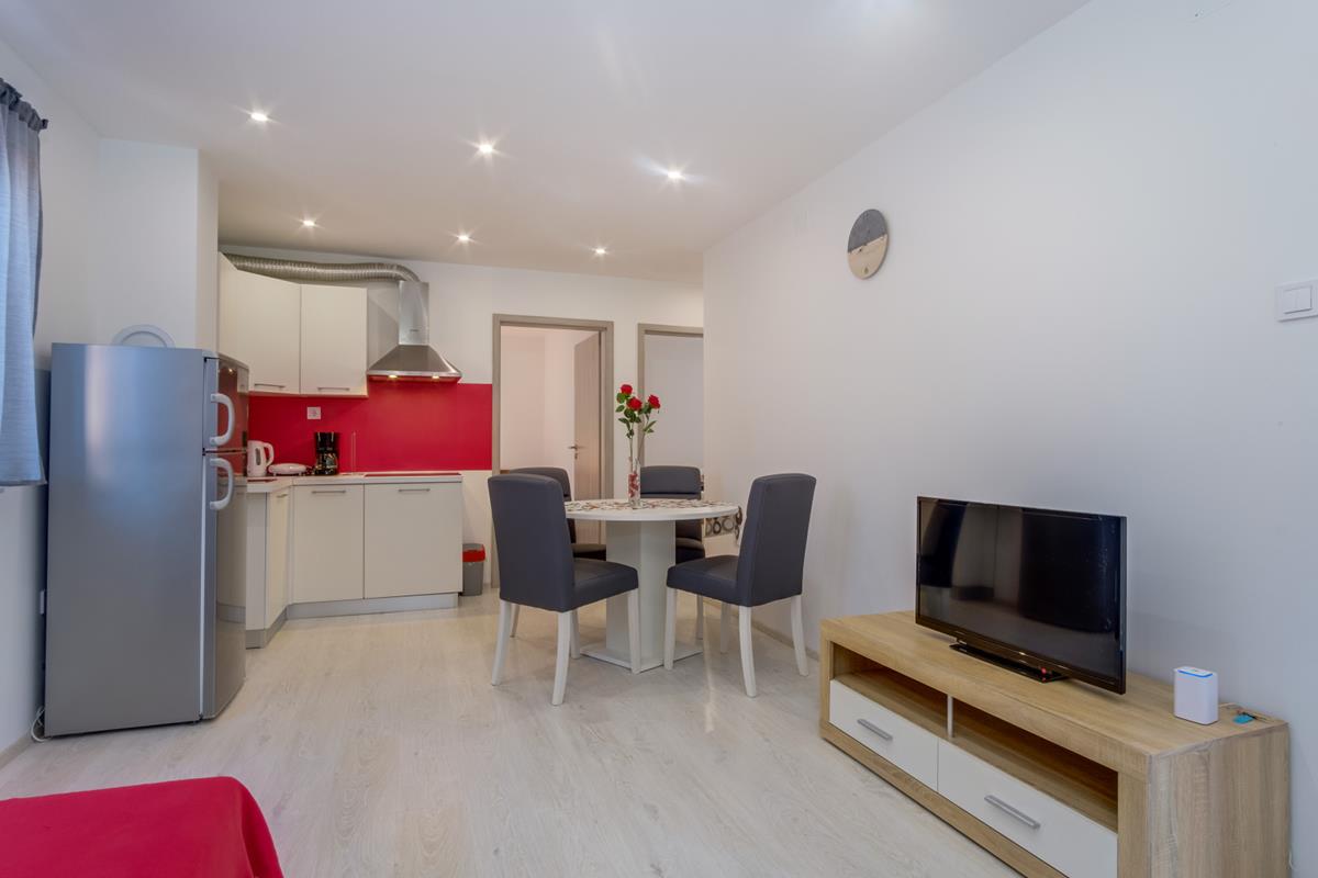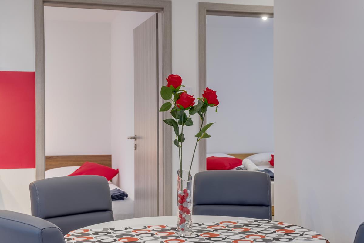 3*** (4+1,4+2) consists of two bedrooms, one with a double bed, the other with two single beds, kitchen, dining room, living room with sofa bed and terrace (dining table, covered with pergola and grill).